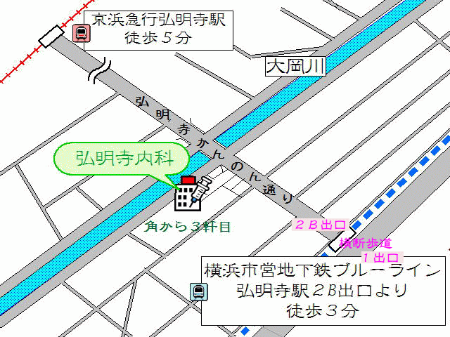 アクセスaccess 弘明寺内科 〒2320061 横浜市南区大岡2−1−17 セレサ弘明寺101 TEL.045-716-0010